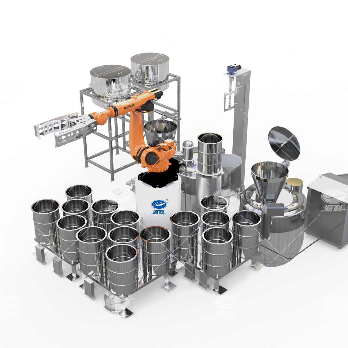 該系統(tǒng)由中央系統(tǒng)控制,采用機(jī)器人抓取投料,過程穩(wěn)定高速。